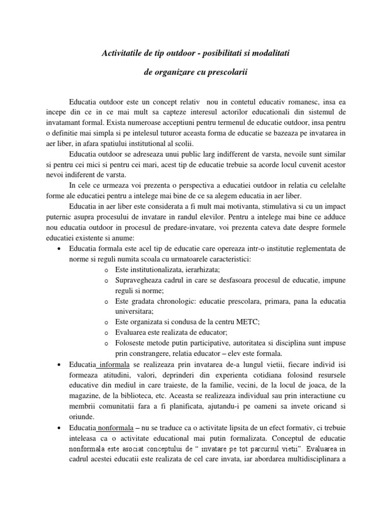 Doc Activităţile De Tip Outdoor Posibilităţi Si Modalităţi De Organizare Cu Prescolarii Ana Maria Prisacaru Academia Edu