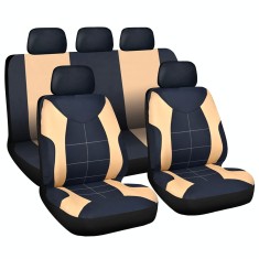 Set Huse Scaune Auto Pentru Fata Piele Ecologica Textil Crem