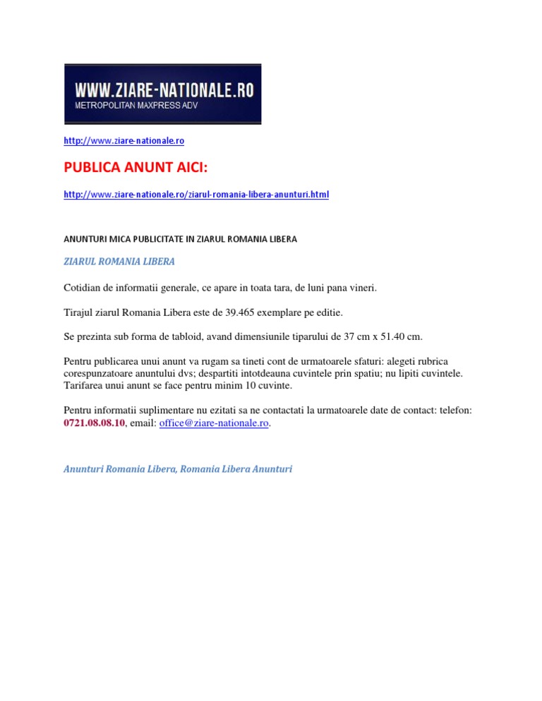 Anunturi Romania Libera